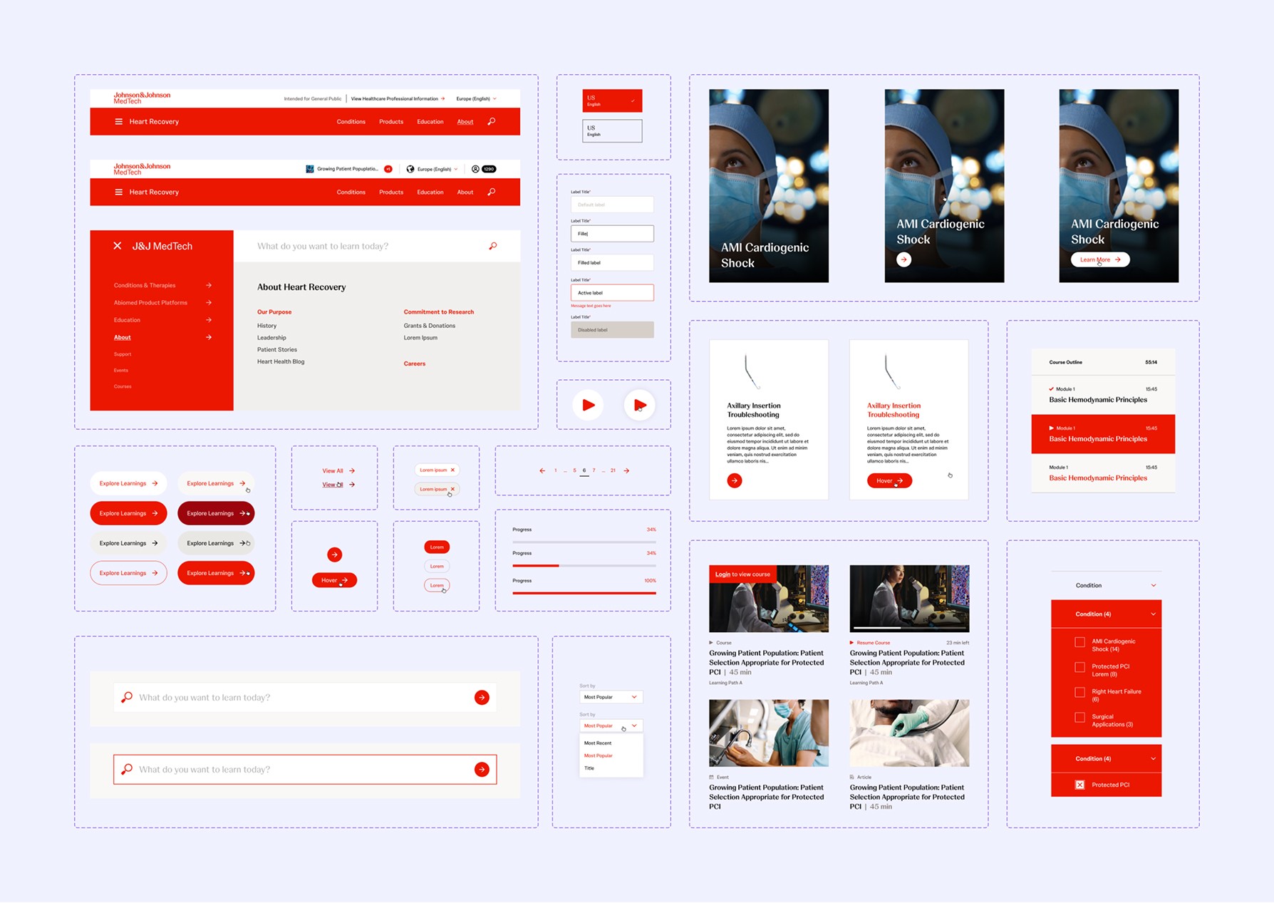 J&J had recently rebranded and unveiled a new logo and design system. My role involved interpreting these brand guidelines into a digital design system for HeartRecovery, creating new components and solutions specific to their needs and built with accessibility and modularity at the core.