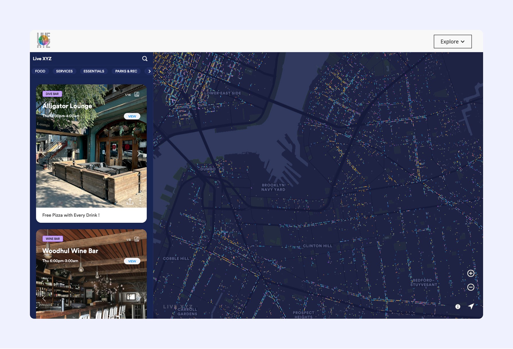 LiveXYZ has since shut down its consumer app, but the data lives on. With continued partnerships with the city and BIDs, projects like wayfinding displays and data reports and dashboards have remained strong.